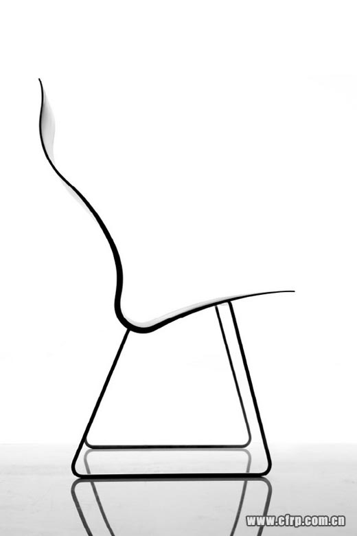 According to the studio, the shape of the chair "began as a trace of a person’s back, in charcoal on a 6’’ piece of butcher’s paper". It is also an acute exploration of the strength and flexibility of carbon fiber – an extremely lightweight material usually reserved for the aerospace and automotive industries due to its high cost.