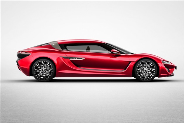該車外身采用與Quant E不同的配色方案,還具有更大尺寸的外后視鏡。Quant F采用了鷗翼門設(shè)計(jì),大尺寸的車門方便車內(nèi)的四名乘客上下車,整車長5257mm。