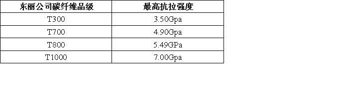 東麗公司碳纖維品級性能表