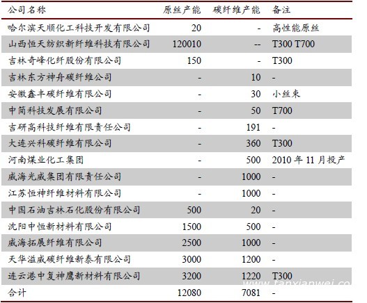 表3:國內碳纖維廠商產能統(tǒng)計(噸)