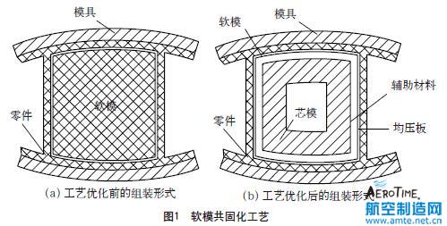 針對上述問題,我們經(jīng)過反復試驗,在工程化生產(chǎn)中不斷改進,將軟模共固化工藝優(yōu)化為圖1(b)所示形式,利用這種工藝方案連續(xù)生產(chǎn)300多架份的復合材料產(chǎn)品,質(zhì)量一直穩(wěn)定。