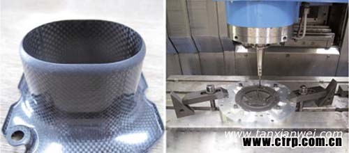 碳纖維增強(qiáng)樹脂基復(fù)合材料(CFRP)是在碳纖維上層疊多層浸漬了環(huán)氧樹脂的片材(預(yù)浸材),然后加熱加壓制成的。因此在切削時容易出現(xiàn)的問題是預(yù)浸材之間和纖維之間出現(xiàn)分層和劈裂。解決了這些問題,開始面向摩托車和汽車策劃、設(shè)計(jì)和生產(chǎn)CFRP部件的是日本東京R&D公司(總部:東京)(圖1)。