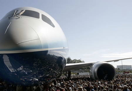 波音787(Dreamliner)中型雙發(fā)(動機)寬體中遠程運輸機,是波音公司(Boeing Co.)1990年啟動波音777計劃后14年來推出的首款全新機型,由波音民用飛機集團(BCA)負責開發(fā),在2004年4月正式啟動。經(jīng)多次延期后,于美國時間2009年12月15日成功試飛,標志著波音787飛機的制造項目進入交付使用前最后一個階段,預(yù)計2010年交付使用。2011年9月27日零時20分,波音787“夢想飛機”交付全日本航空運輸公司(All Nippon Airways Co.,簡稱“全日空”),預(yù)計2012年中旬中國將迎來自己的波音787。 123456