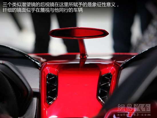 三個(gè)類似潛望鏡的后視鏡在這里所賦予的是象征性意義,纖細(xì)的鏡面似乎在蔑視與他同行的車輛,