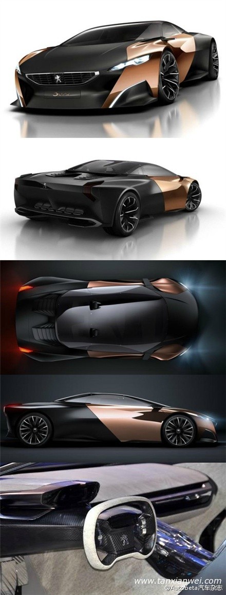 概念車賞析:標(biāo)致發(fā)布了一款Onyx混合動(dòng)力跑車,車身采用薄銅片和碳纖維制成,全車僅重1100kg