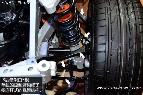 整個乘員艙的結(jié)構(gòu)由多層碳纖維復(fù)合材料拼合而成,輕量化和高強度是它最大的特點,這樣的設(shè)計類似于F1賽車中駕駛艙的單體橫造結(jié)構(gòu)(由碳纖維復(fù)合材料構(gòu)成),而最終的效果就是i8的車身重量不到1.5噸。
