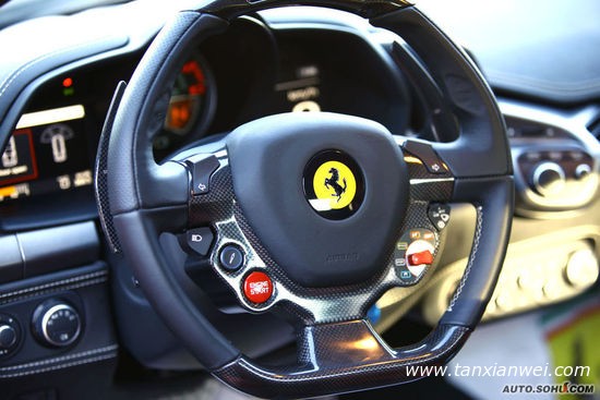 法拉利458 Italia敢以國家的名字命名,就代表它一定有非凡之處,也許它方向盤上復(fù)雜的按鈕和錯(cuò)亂的儀表盤讓人抓狂,但沒人在乎,因?yàn)樗鼘?shí)在是太美了,美到我寫下這部分文字的時(shí)候內(nèi)心都是激動(dòng)著的!它裝配的4.5LV8發(fā)動(dòng)機(jī)性能出色,可以在加速上完爆前代車型F430,美到窒息的外形下是碳纖維打造的內(nèi)飾,駕駛艙內(nèi)每個(gè)細(xì)節(jié)都散發(fā)著高貴氣息!
