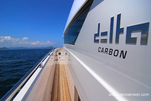 由瑞典 Delta Powerboats 公司推出的 Delta 54 Carbon Cruiser 游艇已于今年五月在香港首發(fā),并將于今年10月在深圳首次亮相中國(guó)內(nèi)地。作為全球首款全碳纖維豪華游艇,Delta 54 使用的材質(zhì)近似蘭博基尼超級(jí)跑車,重量不僅比同型游艇減輕三成而且擁有更快的航行速度,用小馬力就可輕松達(dá)到30節(jié)。