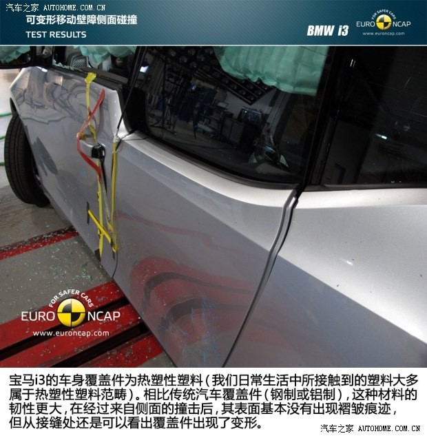 而我們之前所關注的碳纖維車身和電池則在碰撞測試中表現(xiàn)良好,車輛對假人的保護也比較全面。我們還發(fā)現(xiàn)寶馬i3所使用的熱塑性塑料材質的車身覆蓋件擁有較好的韌性,即便是像可變形移動壁障側面碰撞那樣強烈的撞擊,其表面也不會有明顯的褶皺出現(xiàn),這在日后用車過程中倒是可以降低車輛的維修成本。 本文來自123