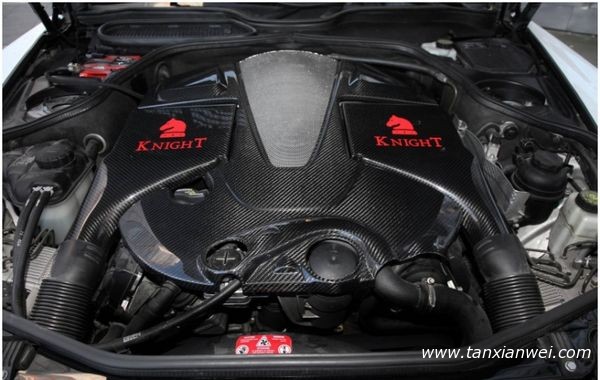 對(duì)于車身的改裝添加的部件全部采用了碳纖維材料,包括:前后擋板,新的發(fā)動(dòng)機(jī)罩 ,行李箱蓋,車尾擴(kuò)散器和后擾流板,另外還未它配備了LED日間行車燈以及24寸輪轂。輪轂的表面經(jīng)過(guò)碳處理,并配以白色剎車卡鉗形成了強(qiáng)烈的對(duì)比。