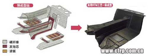 圖12 地板采用RTM工藝將10個(gè)預(yù)成型坯合為一體