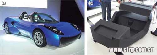 富士重工業(yè)2011年發(fā)售的400輛限量車(chē)型“翼豹WRX STItS”的車(chē)頂就使用了VaRTM工藝〔圖3(a)〕。據(jù)該公司介紹,在小批量生產(chǎn)時(shí),因不需要制造模具,所以模具費(fèi)用低于RTM。
