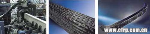 由SGL Kumpers負(fù)責(zé)成型。左起分別為August Herzog公司的編織機(jī)、編織物預(yù)成型坯、RTM成型品。