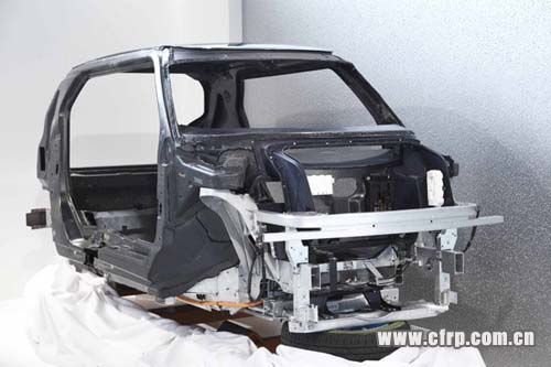 大部分采用預(yù)浸料工藝,地板、A柱及碰撞吸能盒采用RTM工藝制成。后部部件采用SMC成型工藝制成。