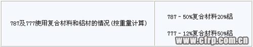與波音777飛機相比,復合材料在波音787中的占比有很大提升,達到50%,遠超過鋁所占的20%。而波音777中復合材料約占12%,鋁占50%。