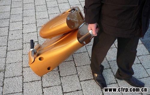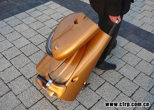 同時,設(shè)計人員還考慮到了衛(wèi)生問題,讓摩托車折疊后完全變成一個類似手提箱的物體,這樣使用者在拖行過程中就不會接觸到摩托車車身較臟的部位。