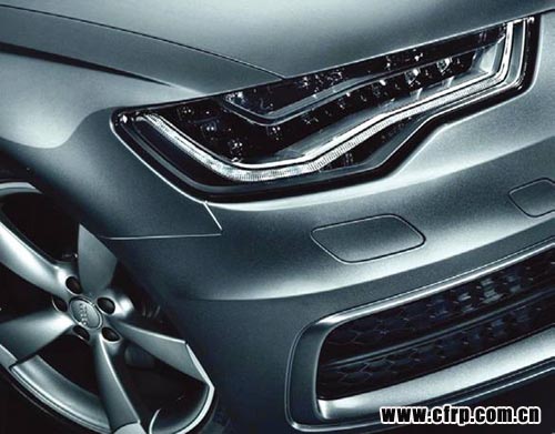 2012款奧迪A6車型中的兩個LED前大燈,其底座及燈泡周圍的組件完全采用了玻纖填充的BMC TD 156材料,重量達到4 lb(1.8 kg)。Nunnery估計,該車型在車燈部件上采用的BMC總量將達到50萬lb(約合226.8 t)。他高興地表示,“我們的BMC材料是按每輛車幾公斤的數(shù)量級增長的。如果2012年全球需求及汽車產(chǎn)量上升,那么我們的銷量就將成倍增長。”