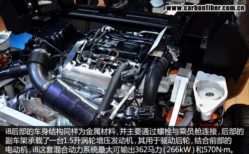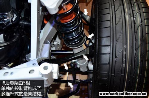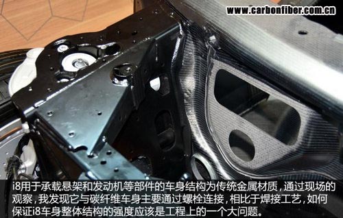 整個乘員艙的結(jié)構(gòu)由多層碳纖維復(fù)合材料拼合而成,輕量化和高強度是它最大的特點,這樣的設(shè)計類似于F1賽車中駕駛艙的單體橫造結(jié)構(gòu)(由碳纖維復(fù)合材料構(gòu)成),而最終的效果就是i8的車身重量不到1.5噸。 本文來自123
