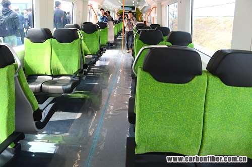據(jù)了解,該款市域快軌車輛在制造材料上首次采用了碳纖維、鋁鎂合金等新材料,使得列車節(jié)能環(huán)保性更強(qiáng)。