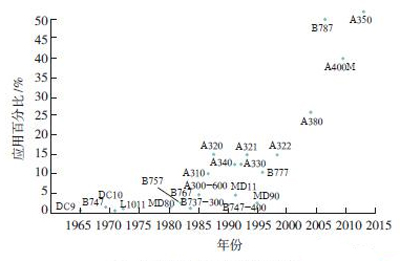 圖1 大型客機(jī)復(fù)合材料應(yīng)用情況