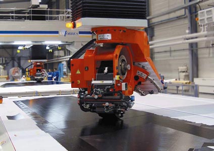此類設(shè)備采用150mm或300mm帶寬的標(biāo)準(zhǔn)碳纖維帶子,具有非常高的生產(chǎn)效率和最佳的壓實(shí)能力,在生產(chǎn)中獲得了成功應(yīng)用,超過34臺(tái)的此類設(shè)備已經(jīng)投入運(yùn)行最長(zhǎng)達(dá)13年以上。這種鋪帶機(jī)的典型應(yīng)用是制造水平尾翼、襟翼、方向舵、升降艙、機(jī)翼等飛機(jī)部件,基本上已成為制造上述所有部件的標(biāo)準(zhǔn)技術(shù)方案。