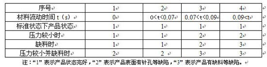 觀察材料的流動(dòng)分析圖不同顏色可以看到,材料流動(dòng)所經(jīng)歷的時(shí)間不同,其中最長(zhǎng)流動(dòng)時(shí)間為0.1s,具體流動(dòng)如下圖:
