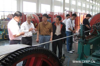 此外,還需要增韌改性,使所制芯棒具有韌性,而不是硬棒。否則不會通過放線滑輪試驗。連續(xù)拉擠成型是成熟工藝。但制造碳纖維復合芯棒具有一定的特殊性。簡單的工藝流程是:將碳纖維筒放在整理架上,單向(0°)集束,包覆玻璃纖維,浸漬環(huán)氧樹脂膠液,通過鋼制??冢钥刂浦睆?,然后通過固化爐,固化成型。芯棒直徑可在0.19~19mm范圍內調節(jié),拉擠速度可在2.7-18m/min范圍內調節(jié)。
