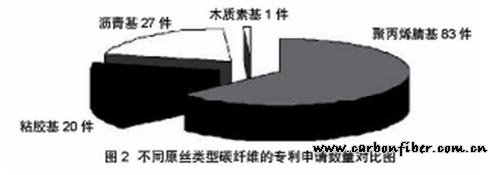 圖2 不同原絲類(lèi)型碳纖維的專(zhuān)利申請(qǐng)數(shù)量對(duì)比圖