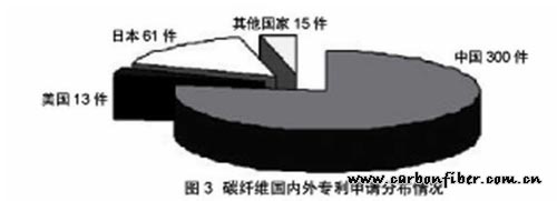 圖3 碳纖維國(guó)內(nèi)外專(zhuān)利申請(qǐng)分布情況