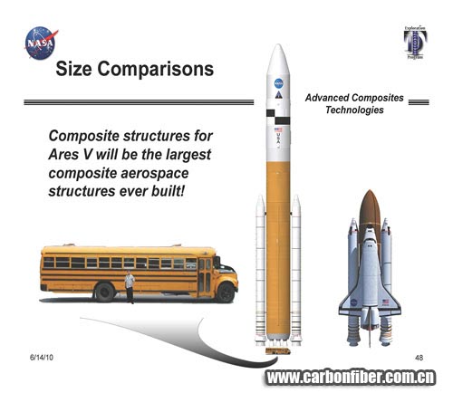 圖6 美國國家航空航天局(NASA)的運載火箭(先前的“戰(zhàn)神V”)可以成為因采用OOA預(yù)浸料而節(jié)省大筆金錢的一個很好例證。該項目如果采用12m×24m的熱壓罐,估計成本達到$1億。NASA的復(fù)合材料與結(jié)構(gòu)高級顧問Mark Shuart相信,一旦直徑達10m的火箭筒身部分被證明可以使用OOA工藝,那么航空航天復(fù)合材料的制造將發(fā)生極大的變化。圖片來源:NASA