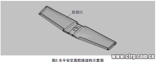 (6)水平安定面由上下蒙皮與翼梁采用二次膠接形成整體結(jié)構(gòu),升降舵蒙皮采用碳纖維與蜂窩夾層結(jié)構(gòu),端肋采用碳纖維復(fù)合材料層壓結(jié)構(gòu)件,梁、蒙皮和端肋采用二次膠接成一個(gè)整體,如圖5所示。