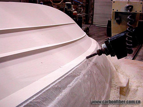 根據(jù)計算機數(shù)據(jù)進(jìn)行的CNC加工是非常精確的。母模生產(chǎn)用的可加工復(fù)合材料模具板和板材來自不同的制造商。這些產(chǎn)品范圍從聚氨酯泡沫、合成環(huán)氧樹脂到碳泡沫。這些材料粘結(jié)在一起后,被加工成特定的模具形狀,然后將其密封防止層壓樹脂滲透,并用雙馬來酰亞胺或環(huán)氧層壓板包覆,最后才進(jìn)行機加工。