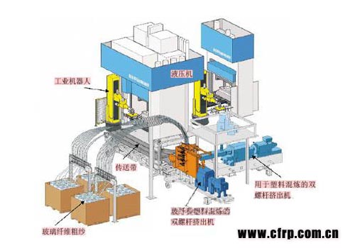 (1)采用直接加工,對纖維增強(qiáng)塑料進(jìn)行在線擠出和壓制,并在高速液壓機(jī)上產(chǎn)生成品部件。這種方式不需要采購半成品,能夠極大地提高成本效率,并節(jié)約物流成本;