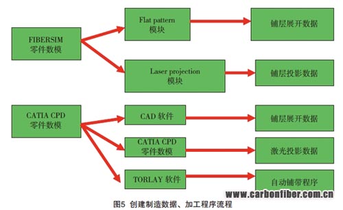 復(fù)合材料零件有其自身的材料、結(jié)構(gòu)以及工藝特點,與一般的金屬制件不同,復(fù)合材料零件除了要設(shè)計表達(dá)形位、尺寸信息,還要設(shè)計表達(dá)鋪層輪廓、角度以及芯材等復(fù)合材料特有的信息。前期基于二位圖紙或CATIA機加模塊建立的三維數(shù)模,無法生成鋪層數(shù)據(jù),無法適應(yīng)數(shù)字化設(shè)備的應(yīng)用,不利于數(shù)字化技術(shù)的發(fā)展。所以應(yīng)采用先進(jìn)的復(fù)合材料專用設(shè)計、工藝軟件進(jìn)行建模和三維標(biāo)注,為復(fù)合材料數(shù)字化技術(shù)的應(yīng)用搭建了軟件平臺。目前國外比較成熟、比較常用的專用軟件為FIBERSIM 和CATIACPD 以及與之配套的輔助軟件。