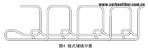 (2)鏈?zhǔn)娇p合。縫頭固定于懸臂機(jī)械手上,依靠機(jī)械手來完成復(fù)雜的縫合動作。因此,鏈?zhǔn)娇p合可以完成所有復(fù)雜曲面預(yù)制體的縫合,但由于縫針為彎月形縫針,所以鏈縫通常適用于相對較薄的預(yù)制體。鏈?zhǔn)娇p合的最大縫合厚度為10mm,當(dāng)纖維預(yù)制體厚度小于1mm,且零件型面曲率較大時,在雙面縫合工作平臺的限制下無法使用鎖式縫合;而對于Tufting縫合,因?yàn)榱慵^薄,縫線不易留在零件內(nèi),所以對于此種預(yù)制體的縫合最好采用鏈?zhǔn)娇p合方式。 本文來自123