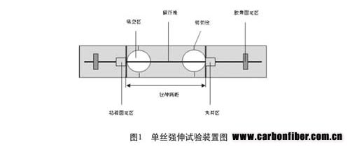 碳纖維單絲的強(qiáng)伸試驗(yàn)不同于其他柔性纖維的單纖維試驗(yàn)。碳纖維不能直接夾持在預(yù)定隔距的兩夾頭間。其原因很簡(jiǎn)單,一是纖維的脆性使整個(gè)夾持成功率極低,纖維往往在夾持過(guò)程中因彎折而斷裂。二是即使夾持成功,夾持端會(huì)對(duì)纖維產(chǎn)生損傷,使纖維的斷裂發(fā)生在鉗口處,所測(cè)數(shù)據(jù)不能反映纖維的真實(shí)特性。因此,碳纖維單絲的強(qiáng)伸試驗(yàn)首先要求將單根碳纖維粘貼于特制的試樣卡上,