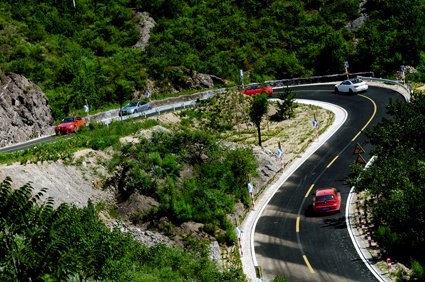 20km之后車隊(duì)擺脫了束縛駛?cè)敫咚?,將Drivelogic換檔響應(yīng)調(diào)到最高級(jí)別,此時(shí)發(fā)動(dòng)機(jī)轉(zhuǎn)速要拉到接近紅線才會(huì)被迫晉升檔位。需要超車或全油門加速時(shí)變速器甚至?xí)B降3-4檔以輸出到最大扭矩。直接的講,Drivelogic系統(tǒng)的最高級(jí)是最暴力、最直接的。變速器對(duì)動(dòng)力釋放變得毫無保留,只要我需要它便會(huì)幫助我一起壓榨出更多。 copyright 123456