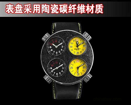 他們的靈感來(lái)自四個(gè)缸體的手表獨(dú)具創(chuàng)意,四個(gè)表盤分別采用了四種不同的瑞士機(jī)械走時(shí)系統(tǒng),這款陶瓷碳纖維手表的表殼是由Brembo使用同制造制動(dòng)碟一樣的工序加工出來(lái)的,短小的碳纖維中還整合了高強(qiáng)度的陶瓷。