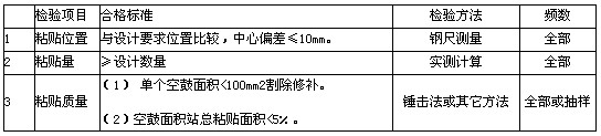 ?。?)、檢驗(yàn):粘貼完工后,按規(guī)程進(jìn)行檢驗(yàn)。