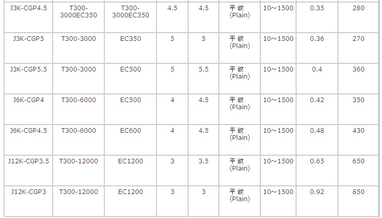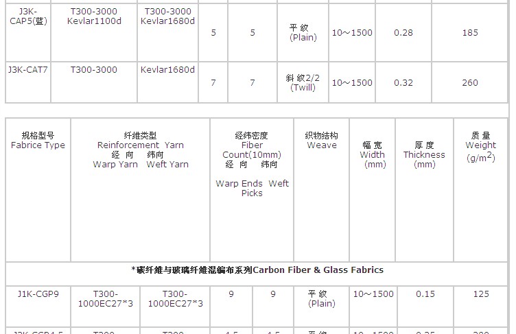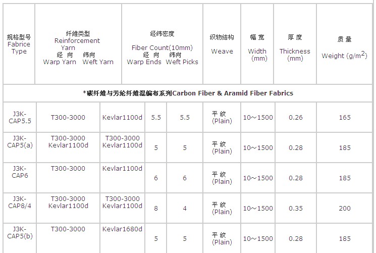 碳纖維芳綸混編布技術(shù)參數(shù)